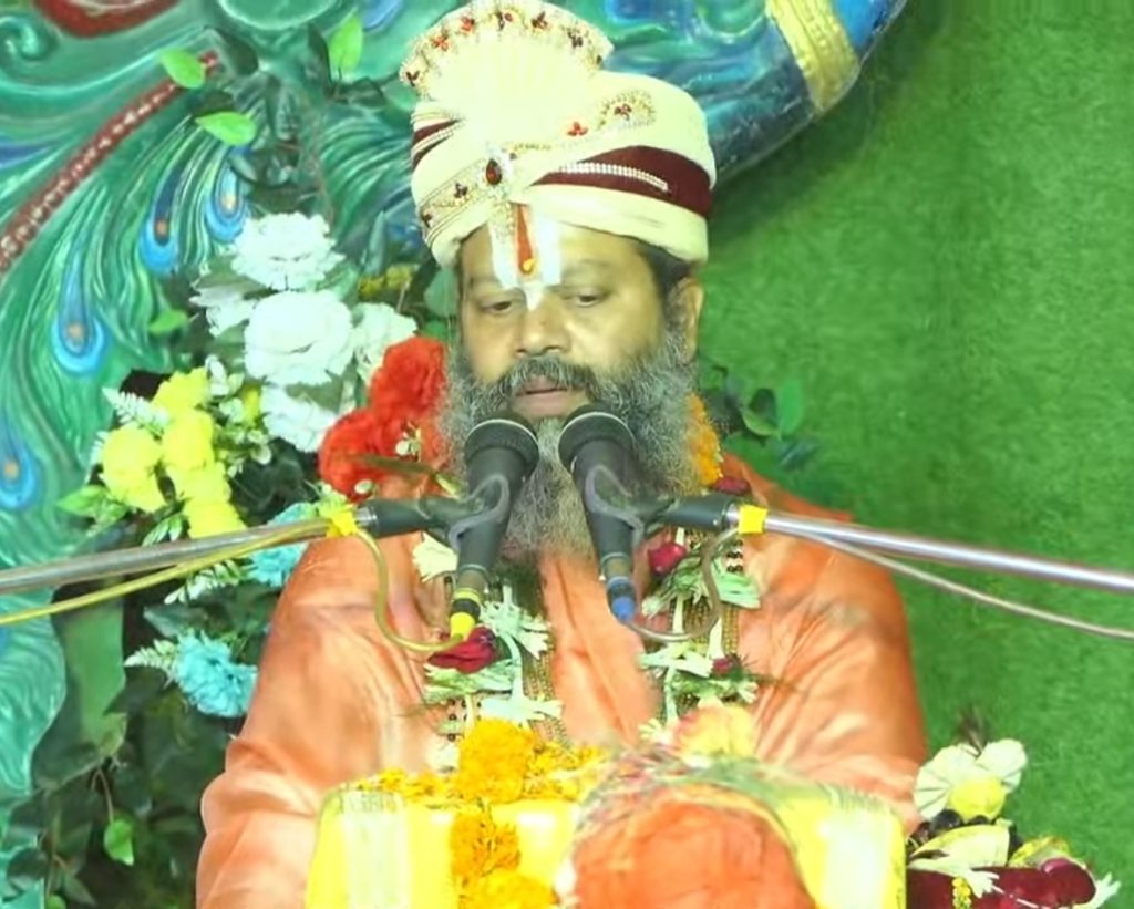 श्रीमद्भागवत कथा के छठे दिन मंगलवार 7 अप्रैल को कथावाचक श्री रामभद्राचार्य जी महाराज (हिमालयन बाबा) ने भगवान श्रीकृष्ण की बाल-लीलाओं से लेकर कंस वध और रुक्मिणी विवाह तक के प्रसंगों का भावपूर्ण और जीवंत वर्णन किया। खास बात कि रुक्मिणी विवाह के जीवंत वर्णन की वजह से कथा आधी रात लगभग साढ़े 12 बजे तक सुनायी गयी। कंस वध प्रसंग के समय तो जय श्री कृष्ण और विवाह प्रसंग के समय राधे-राधे के जयकारे से माहौल गूंज उठा। इसके पहले दाऊ बलराम और राजकुमारी रेवती का विवाह प्रसंग सुनाया गया।