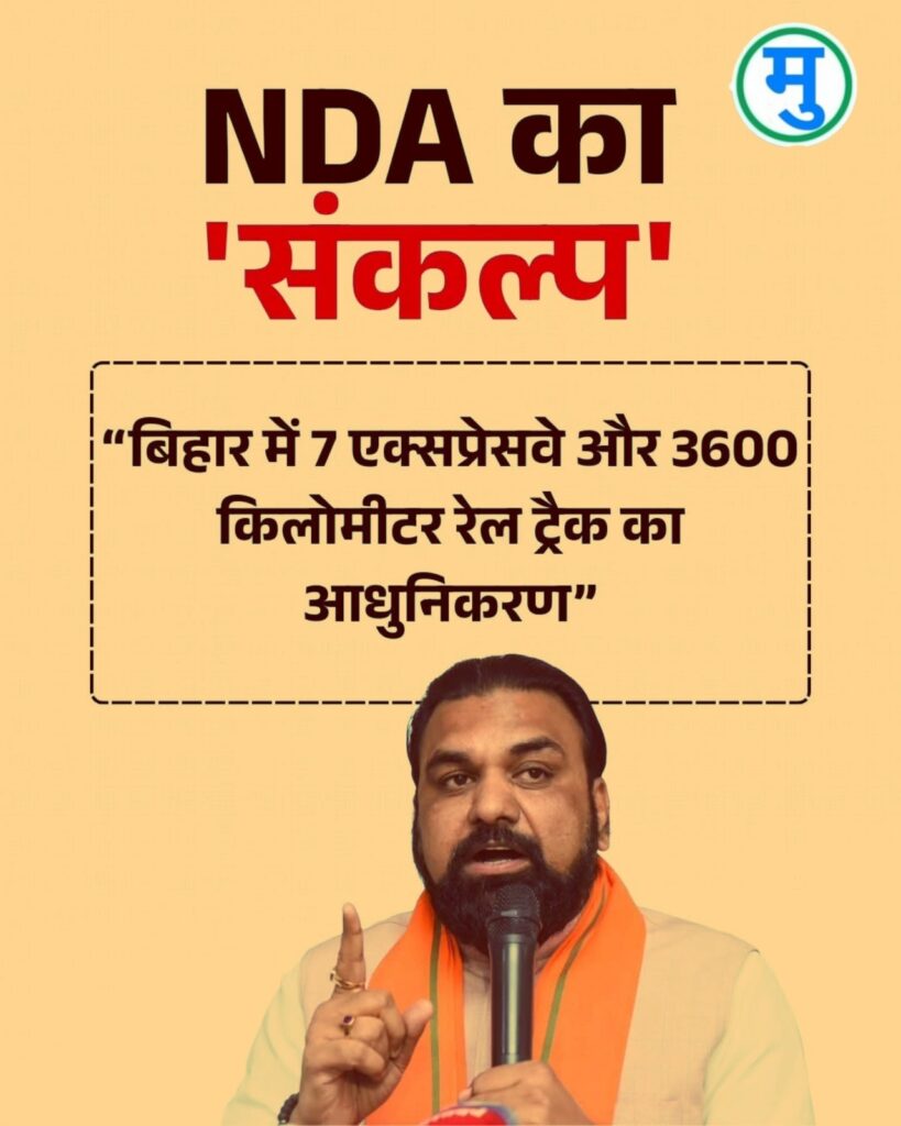उपमुख्यमंत्री सम्राट चौधरी ने बताया कि एनडीए का संकल्प बिहार के किसानों के लिए सौगात, युवाओं के लिए अपार अवसर, महिलाओं को बराबरी हिस्सेदारी, एक्सप्रेस-वे की रफ्तार, जिले-जिले में औद्योगिक उड़ान, ईबीसी वर्ग को विशेष सौगात देगा। बिहार अब देश के अव्वल राज्यों में शामिल होने के लिए तैयार है। प्रधानमंत्री नरेंद्र मोदी और मुख्यमंत्री नीतीश कुमार के नेतृत्व में डबल रफ्तार से आगे बढ़ने जा रहा है।