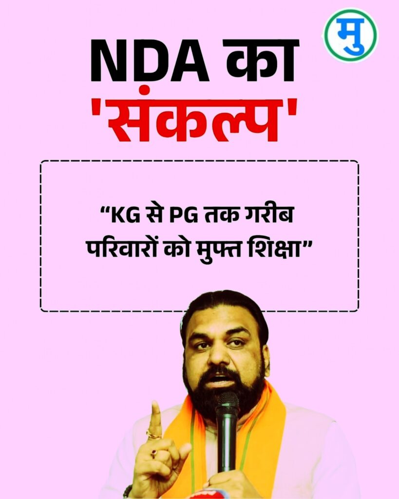 इसमें बताया गया कि एनडीए की ओर से सरकार बनने पर बिहार में 1 करोड़ नौकरी दी जाएगी। साथ ही महिलाओं को 2 लाख तक की मदद दी जाएगी। इसके अलावा 1 करोड़ महिलाओं को लखपति दीदी बनाने का लक्ष्य रखा गया है। इसी तरह, गरीबों के लिए KG से PG तक मुफ्त शिक्षा का भी वादा किया गया है। मां जानकी के मंदिर को अगले 5 सालों में पूरा किया जाएगा। सीतापुरम के नाम से इस इलाके को विकसित किया जाएगा। आनेवाले समय में बिहार के अन्य 4 शहरों में मेट्रो सेवा शुरू की जाएगी।