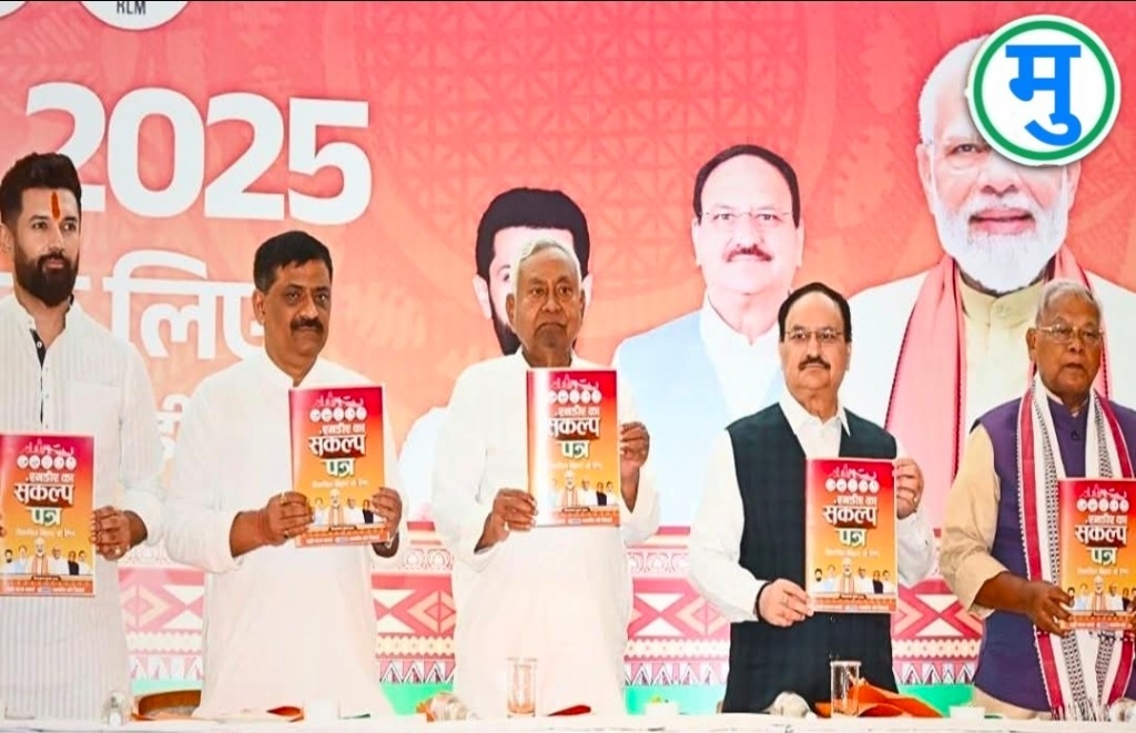 Rajesh Thakur / Patna : बिहार विधानसभा चुनाव को लेकर एनडीए की ओर से 31 अक्टूबर को घोषणापत्र जारी किया गया। पटना के होटल मौर्या में आयोजित कार्यक्रम में इस मौके पर केंद्रीय मंत्री सह भाजपा के राष्ट्रीय अध्यक्ष जेपी नड्डा, मुख्यमंत्री नीतीश कुमार, उपमुख्यमंत्री सम्राट चौधरी, केंद्रीय मंत्री सह हम पार्टी के संस्थापक जीतनराम मांझी, केंद्रीय मंत्री सह लोजपा (रामविलास) के राष्ट्रीय अध्यक्ष चिराग पासवान और रालोमो के राष्ट्रीय अध्यक्ष उपेंद्र कुशवाहा आदि मौजूद रहे। बाद में उपमुख्यमंत्री सम्राट चौधरी ने पूरे मेनिफेस्टो की जानकारी मीडिया को दी।